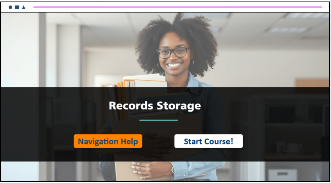 The solution: During the discovery phase, I uncovered that staff were unsure about which forms to use and how to fill them out, as well as the process for storing records. To meet these challenges, I proposed an interactive, self-paced eLearning solution that could fit seamlessly into busy workflows without disrupting operations.